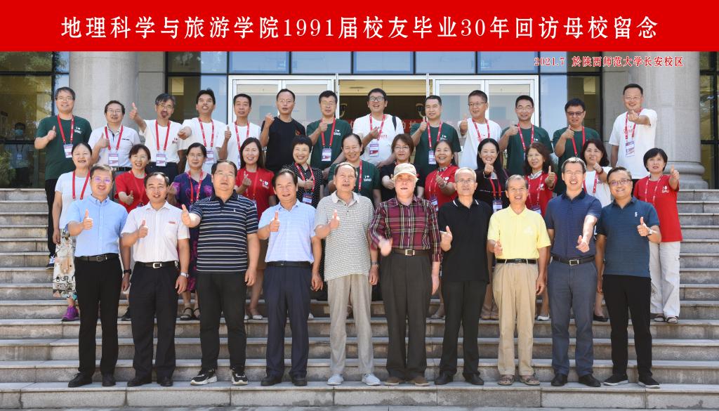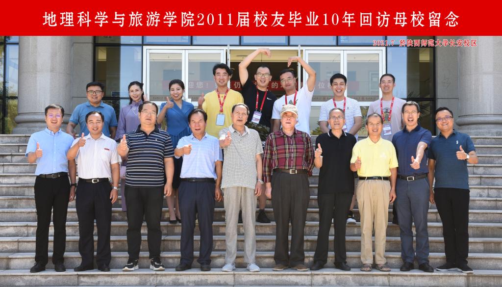 地理系1991届和2011届40余名校友怀着激动的心情和对母校的眷恋从五湖四海相聚一堂,参加校友返校活动。学院党委书记王明道,副院长李君轶、郑海博,党委副书记代晓飞及时任教师马耀峰、任志远、延军平、孙根年、葛淼、陈林与校友一起相聚,共忆似水年华,同叙师生情谊。