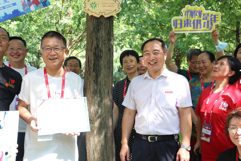 按照疫情防控要求,返校活动采取线上线下相结合的方式进行。上午9点,学院领导、老师与校友在格物楼报告厅通过线上直播观看了学校举办的纪念大会。随后,老同学们一路欢声笑语,共同来到校友林举行认养揭牌仪式。肉漫画