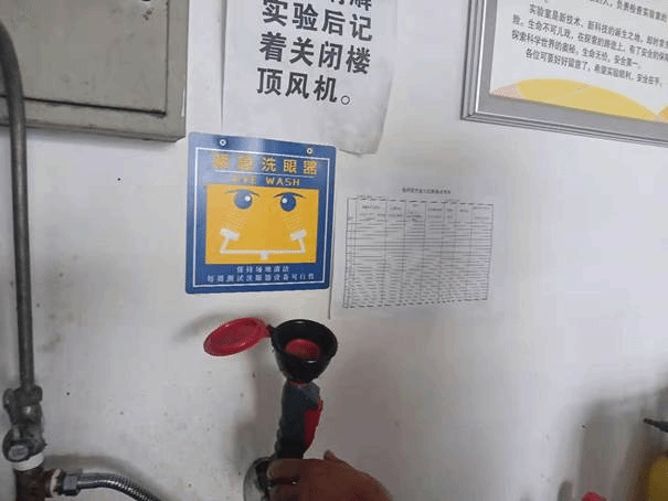 2.1603(安全员:李剑超老师)实验台物品摆放杂乱;没有及时清理固体废弃物;烘箱上摆放易燃物品;未对洗眼器进行定期巡查并记录。