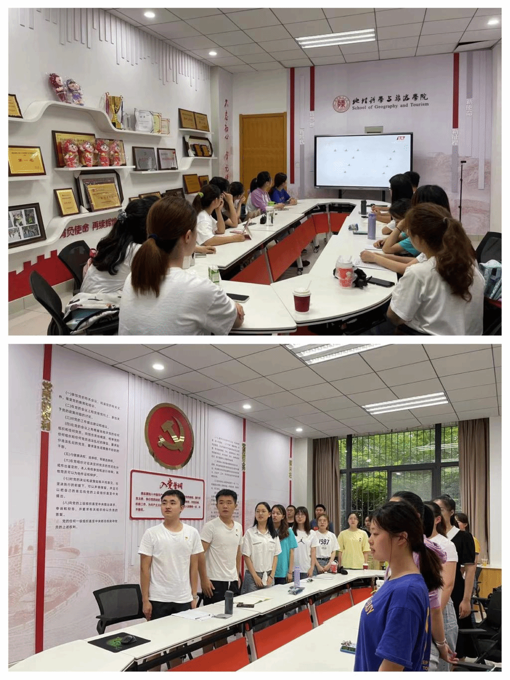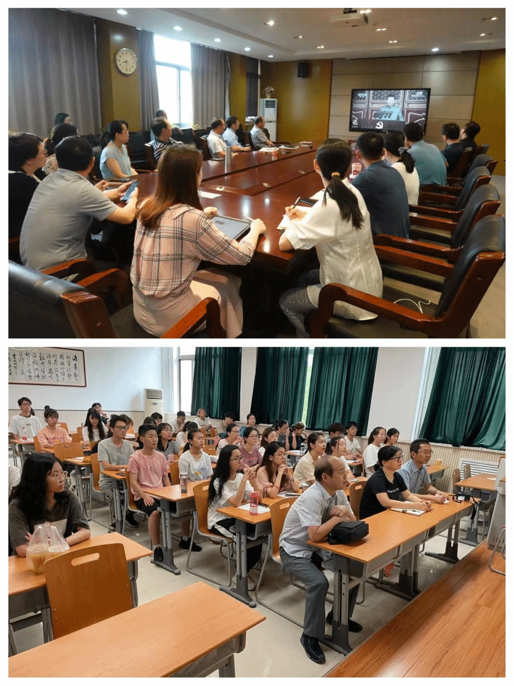 学院班子成员、教师党员及学生党员代表在文汇楼B段301会议室和雁塔校区教学八楼集中收看了大会实况。全体学生党员、学生干部及毕业生同学在宿舍和家中自行收看。