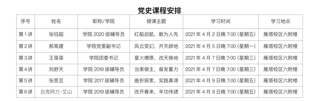 为深入学习贯彻习近平总书记在党史学习教育动员大会上的重要讲话精神,引导青年人知史爱党、知史爱国,营造“全院学党史”的浓厚氛围,学院学工组从顶层设计入手,积极构思学习教育方案,着力“四个注重”,提出“学工干部——党团学生干部——党员团员——全体学生”四级学习教育辐射路径,力争从“先学一步,学深一筹”到“人人参与,知史明史”,实现“学史明理、学史增信、学史崇德、学史力行”,在学思践悟中坚定理想信念,在奋发有为中践行初心使命。