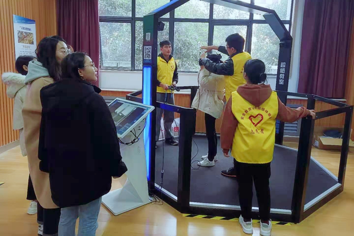 17名研究生参观了位于新勇活动中心一楼的安全教育VR超感体验室,并体验了各种安全教学设备。此次安全教育活动得到了实验室建设与管理处各位领导,学生处教育管理科老师,麦课教育西北片负责人的大力协助。活动由实验中心李敏睿老师组织带队,由学生处组织多名志愿者进行设备讲解并辅助同学们进行体验。