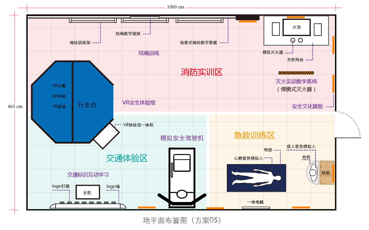 实训馆主要设施及项目包括醉酒行走体验项目、结绳训练、VR安全体验项目、交通标识互动学习项目、安全模拟驾驶项目、灭火实训教学系统和海姆立克训练七大板块。整个过程寓教于乐,通过完善的信息化基础设施和专业的教学设备,“场景式+情景式+体验式”的教育方式,使之成为避灾避险培训和体验的一站式场所,以期全面提升肉漫画