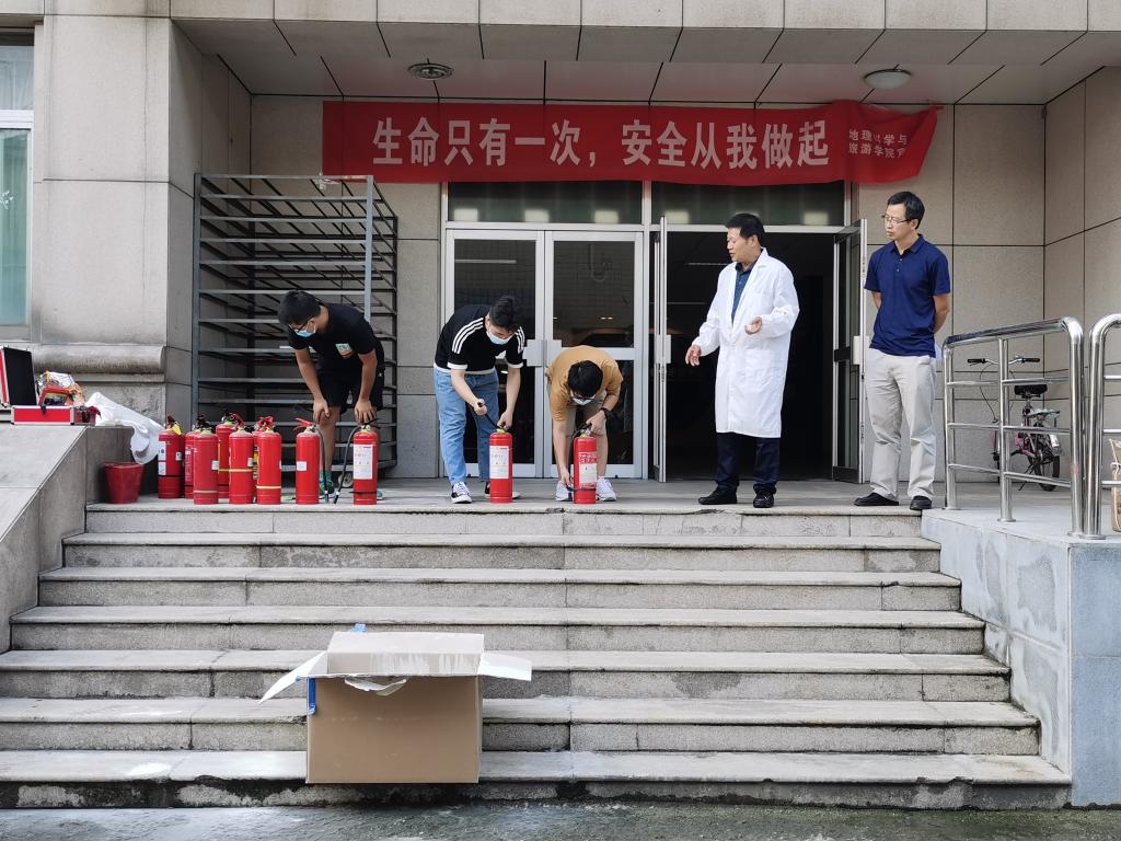 实验中心于2020年9月10日下午在文汇楼C211对刚刚入校的2020级新生及新入职教师进行了实验室安全培训知识讲座;讲座由主管实验室工作的李君轶副院长主持,李敏睿老师主讲。9月11日上午全体新生分两批在格物楼北门进行消防安全实际演练,之后带领同学们参观位于格物楼的大型仪器平台,进行实验室实地安全培训及相关仪器使用简介。首先由实验室贠蒲军主任对同学们进行消防器材(包括灭火器,灭火毯,防毒面具等)的实物使用现场讲解并由同学们依次进行实地操作演练;之后每批同学分三组分别由马阁、贠疆及李敏睿老师带领,参观了肉漫画