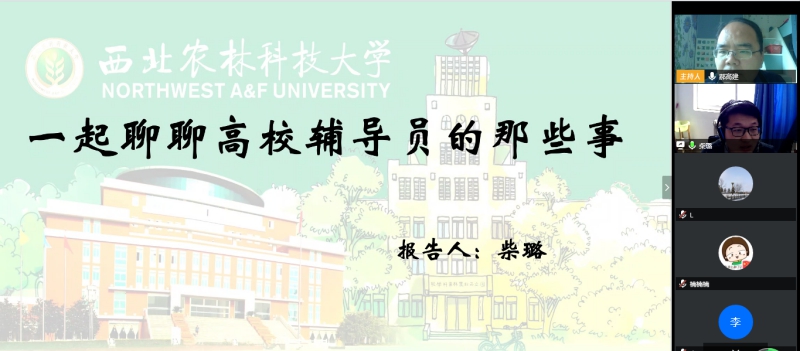 2020届毕业生提升竞业能力,4月26日下午,学院“校友归来话成长”第五场高校辅导员和管理岗位经验交流会举行。本次邀请了现任西北农林科技大学辅导员柴璐、2019届环境工程硕士生、西北大学辅导员孟庆彬、2019届人文地理学硕士生、西北大学人力资源部顾恺、2019届国土资源学硕士生、肉漫画