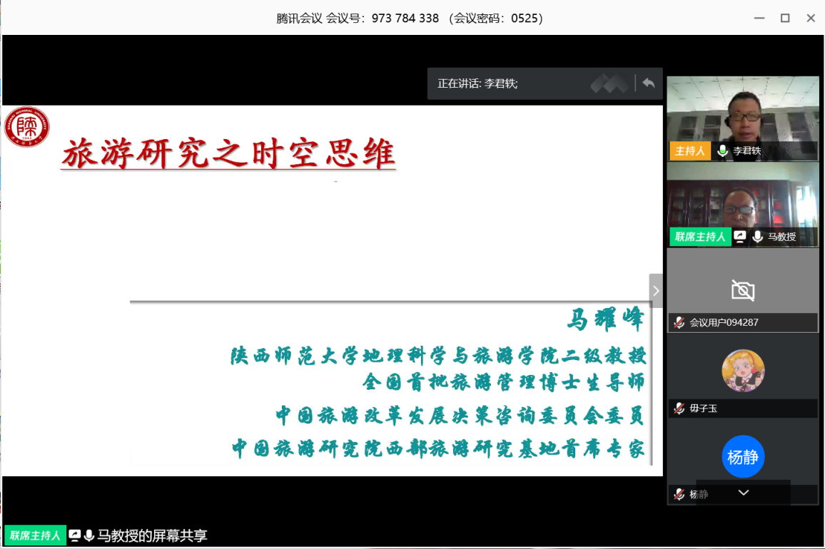 全体师生作了题为《旅游研究之时空思维》的线上学术报告会,报告由学院副院长李君轶主持,学院教师及研究生共计210余人参加了线上报告。