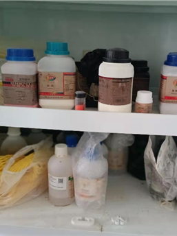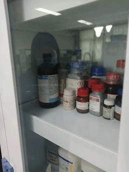1.1613(安全员:王利军老师)药品柜里部分药品没有打印二维码标签;实验台上自己配置的药品没有按照要求粘贴标签(配置药品需要注明成分、溶剂、浓度、配置时间、配置人等信息);高浓度废液(铬酸洗液)应按照要求将较浓溶液(泡过铬酸的瓶子请用适量水洗涤至少三次,倒入废液桶,至少看不到明显洗液颜色方可再在水池正常清洗)倒入废液桶再统一收集处理,铬离子有毒,不可直接排入下水道。