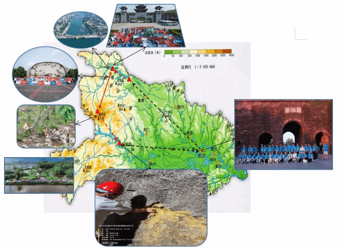 三峡地区,开展地层与古生物(元古代-古生代)、河流地貌、灾害地貌、重大水利工程等内容学习。