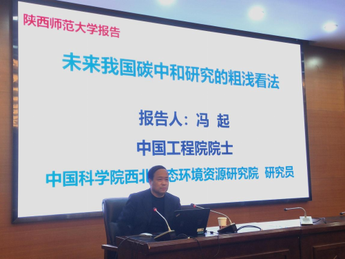 报告中,冯起院士以围绕我国碳中和目标的必要性和紧迫性与待解决的问题作为切入点,深刻阐述了生态系统碳汇能力研究的重大背景和科技需求基础,重点介绍了碳源汇立体监测的各项手段,提出通过浓度、通量和储量的网络化、立体化监测,利用“自下而上〞和“自上而下〞两种途径精确量化我国陆地碳源汇的时空变化。针对黄士高原地区存在的水资源短缺、人工林生长衰退、林草布局不合理,以及青藏高原草地放牧压力大、草地承载力低、草地退化等问题,冯起院士介绍了生态系统增汇以及区域碳汇示范技术,并从全球角度分析和展望未来碳中和决策支持系统的发展方向,他指出,需加强凝练区域增汇系统化的经验,方能更好的服务于国家国土增汇布局。大会最后,冯起院士针对西北地区已实施的双碳工作所具有的基础特征,对排放端、发电端、固碳端三个方面面临的主要挑战及未来发展进行了思考与展望。报告会后,冯起院士与参会的青年教师、研究生等就西北地区碳中和研究中的相关话题进行了深入交流,会场气氛活跃热烈,取得了良好的效果。