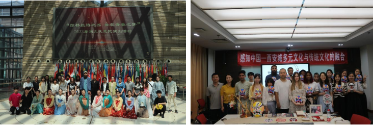 承办的《感知中国》活动于7月7日在西安举办。大唐西市博物馆馆长王彬和宣教部部长张莹,西安市雁塔区旅游协会秘书长李明,地科院副教授冯庆,以及来自俄罗斯、巴基斯坦、加纳等国的留学生参加了此次活动。本次活动聚焦西安城多元文化与传统文化融合,通过秦腔非遗讲座和博物馆研学相结合的方式向留学生展示西安作为古丝绸之路和“一带一路”节点城市的历史地位和重要作用,引导留学生感受中国传统文化的魅力,积极融入中国。此次活动获得了国际留学生的一致好评,通过此次活动,让国际留学生更加深入了解和感知中国传统文化,增强对中国文化的认同感。