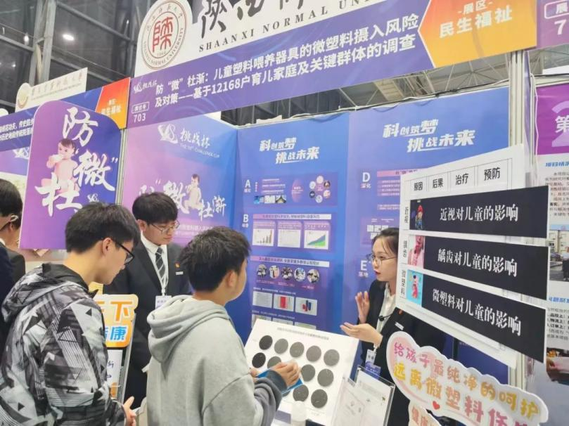 本科生张蓓、段雪妮、张皓然、李楠茜、杨硕、贺菲、任嘉琪、何倩瑶参与的项目《防“微”杜渐:儿童塑料喂养器具的微塑料摄入风险及对策——基于12168户育儿家庭及关键群体的调查》获主体赛全国特等奖,实现肉漫画