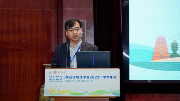 在人才培养、学科建设、科学研究、服务国家教育事业和区域经济社会发展方面的情况,希望与会的代表围绕地理学与区域高质量发展中的问题,碰撞思想花火,共同交流研讨,推动学校地理学科发展。宋进喜理事长回顾总结了陕西省地理学会近年的发展,期望与会专家学者深入探讨最新研究成果,促进地理科学技术的普及和推广,服从国家战略,提高服务地方经济和社会发展能力,为发展地理科学事业作出贡献。