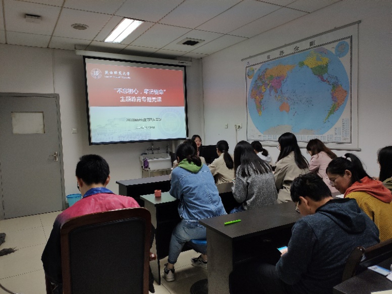 党委研究生第四党支部于10月14日晚在长安校区格物楼1420教室开展了“不忘初心、牢记使命”主题党课学习活动,党课题目为“回顾历史 追寻初心”,支部全体党员同志参与本次党课学习。党课由支部书记张甜同志主讲。