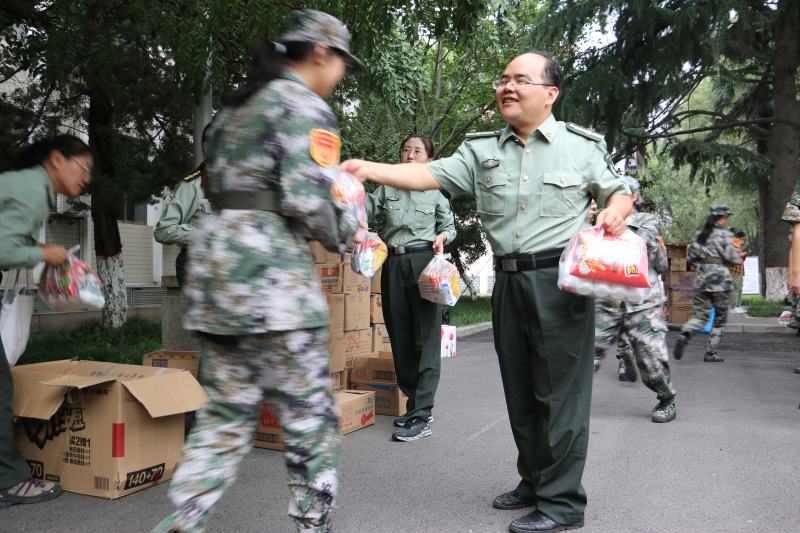 参训新生每日朝六晚九,刻苦训练,展现着他们顽强不屈的精神风貌。学院领导老师向参训新生发放了精心准备慰问品,同时也慰问了全体教官和带队干部。