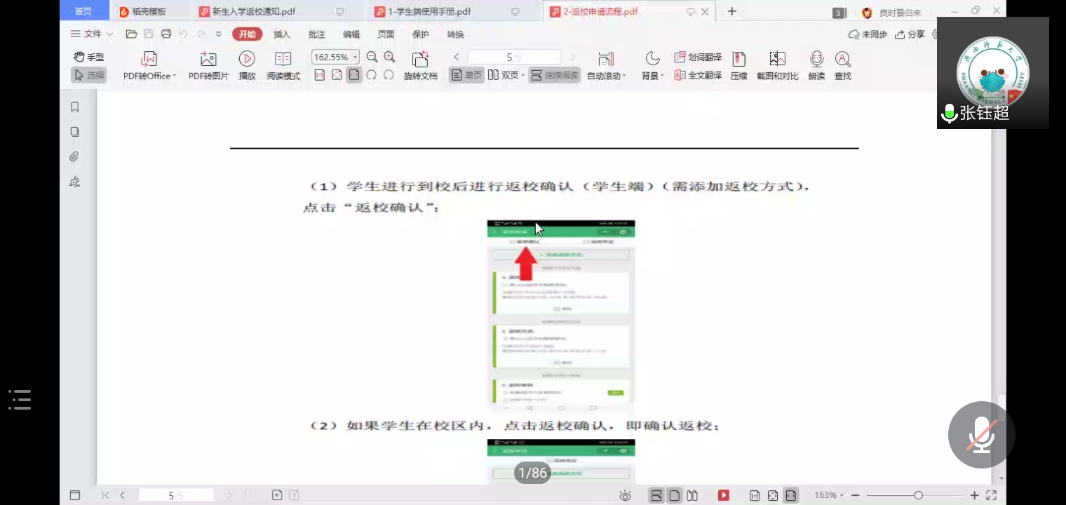 会上,本科生辅导员张钰超老师传达了学校2020级新生报道入学工作安排部署会议精神,就新生报到前、入学后的具体工作做了安排,就新生返校“我在校园”的申请流程、日检日报、请销假线上操作流程及相关注意事项进行了培训和说明。