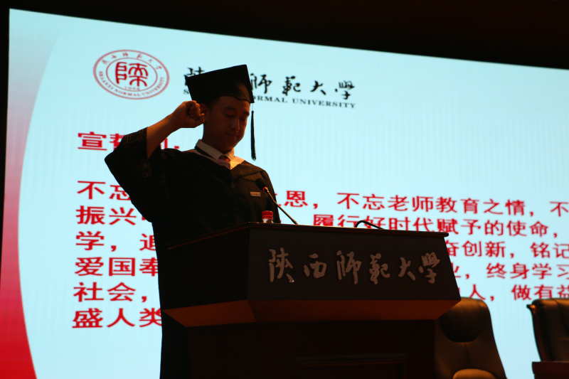 典礼开始前,一段精心制作的毕业短片带领毕业生回顾了过去学习生活的点滴记忆,激起了毕业生对师大和地科院无尽的回忆与留恋,短片最后地科“大家长”李晋东书记和周正朝院长给所有毕业生送上祝福和期盼,嘱咐即将远行的少年们不忘师恩,坚持学习,做最好的自己。