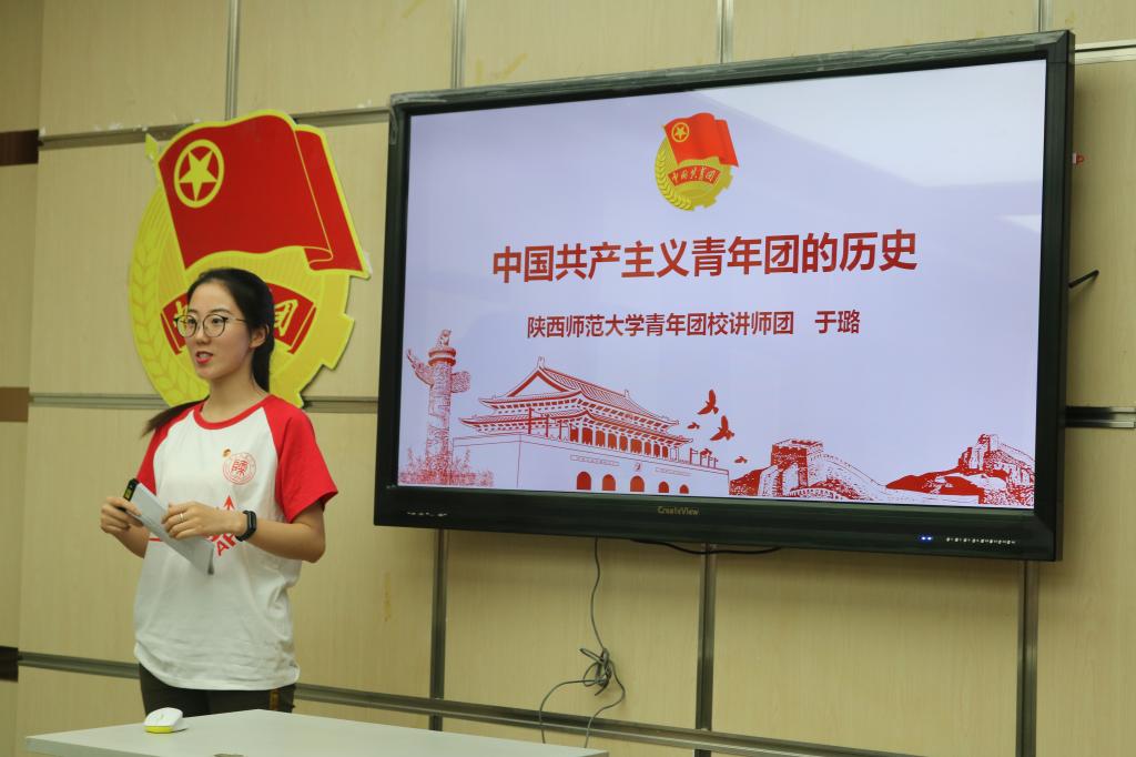 首先由教育学院团委副书记于璐对中国共产主义青年团历史进行了宣讲,让同学们了解到了共青团的发展轨迹及重要事件,从1920年八月的上海社会主义青年团到1957年5月的中国共产主义青年团,在这短短三十多年的历程中,一个先进青年的群团组织建立起来,万众一心为实现共产主义不懈奋斗。接着同学们在范宇广同志的带领下重温了入团誓词,不忘初心,团结奋进。