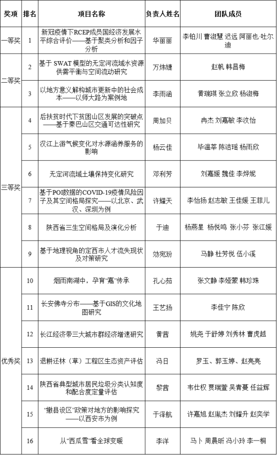 经大赛评委打分,确定了首届“经纬杯”地理展示大赛获奖名单。现将结果予以公示。