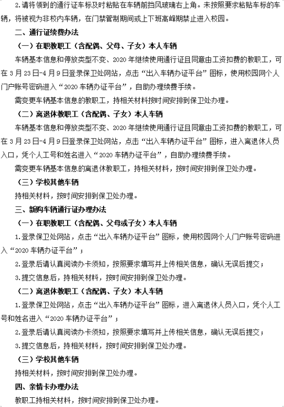 转发保卫处关于办理2020年校园机动车通行证的通知